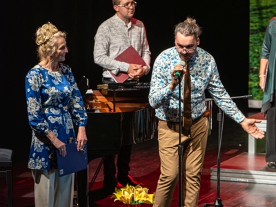 i przy akompaniamencie Łukasza Dębowskiego zaśpiewał dwa utwory: „Que sera, sera” i „Czumba la lajka”.